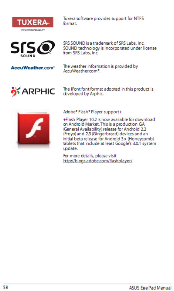messages, calendar, and play music les that are stored on your Eee Pad.