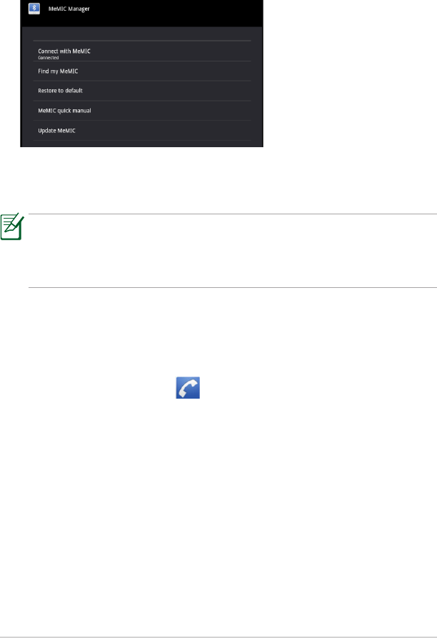 4. Tap Call on your Eee Pad or press the Call key on your MeMic.