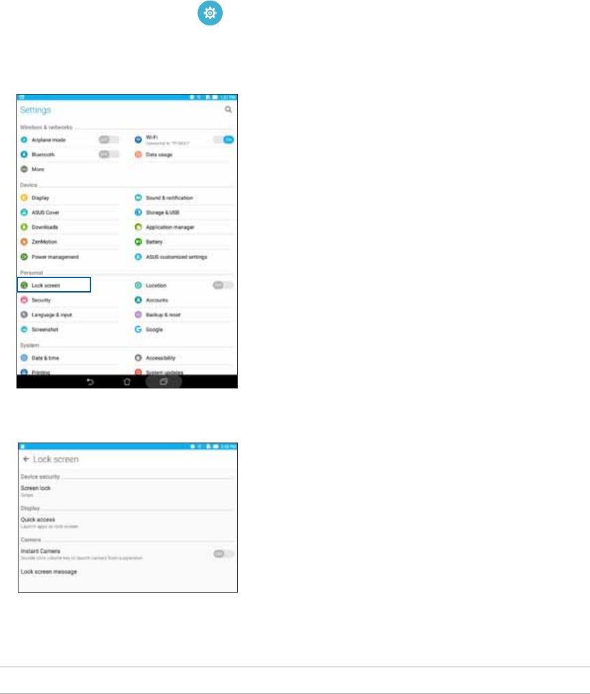 2. Tap Screen lock then select an option to unlock your ASUS Tablet.
