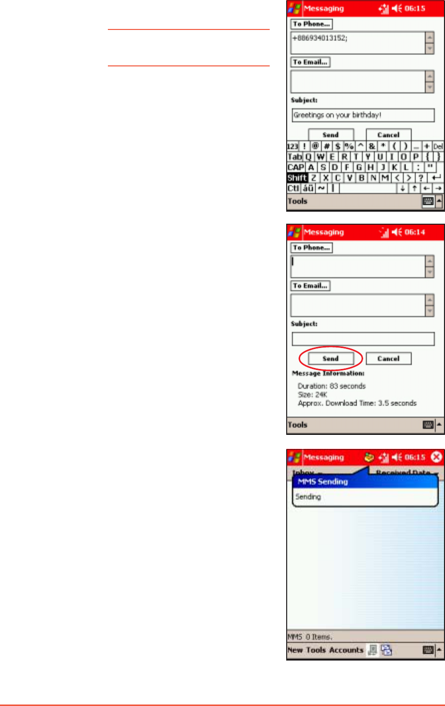 chapter for more information on sending MMS and e-mail