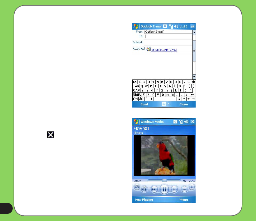 • Tap Start > Programs > Pictures and Videos > Camera icon or