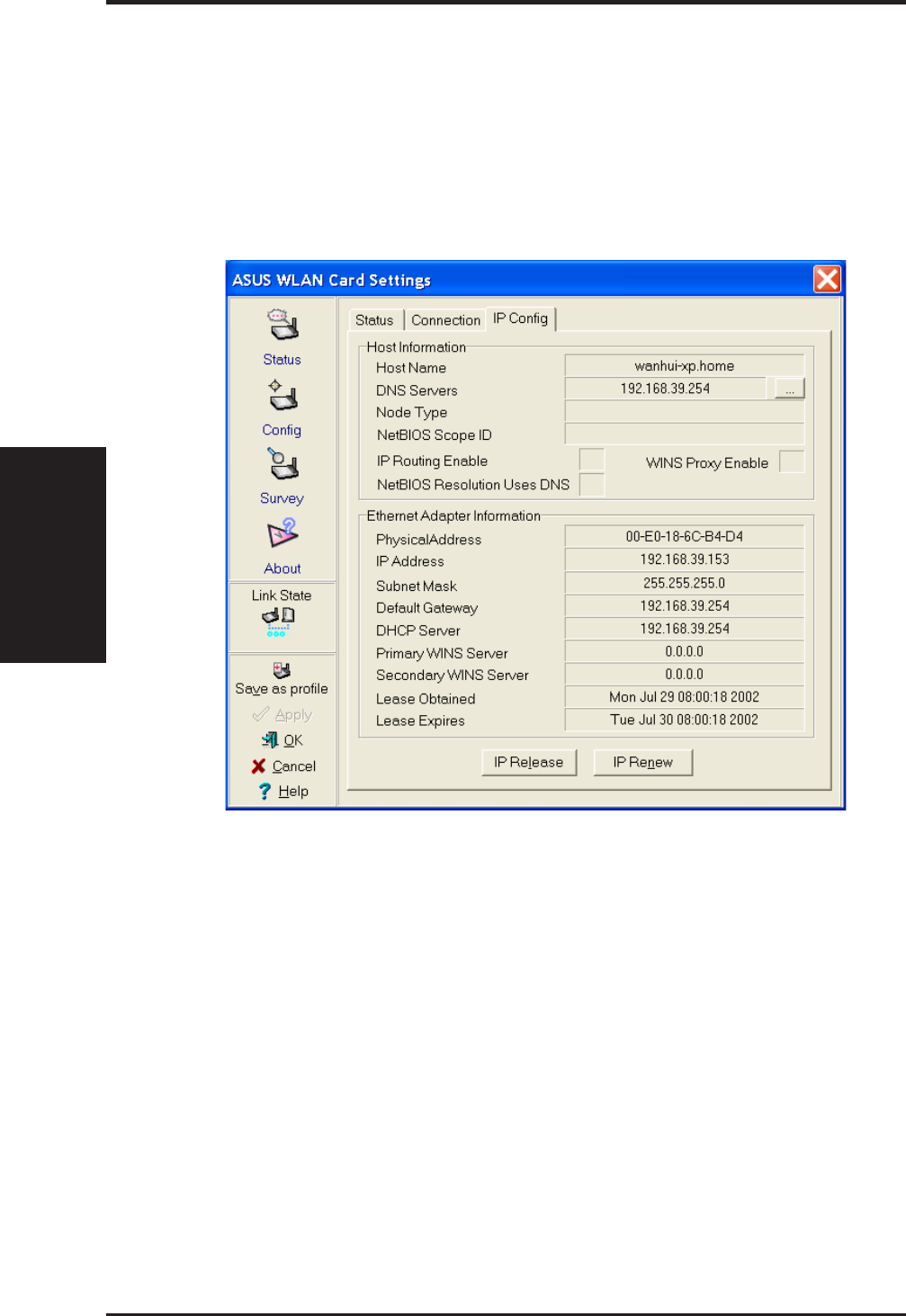 Scroll down and look for "TCP/IP -> ASUS 802.11b Network Adap-