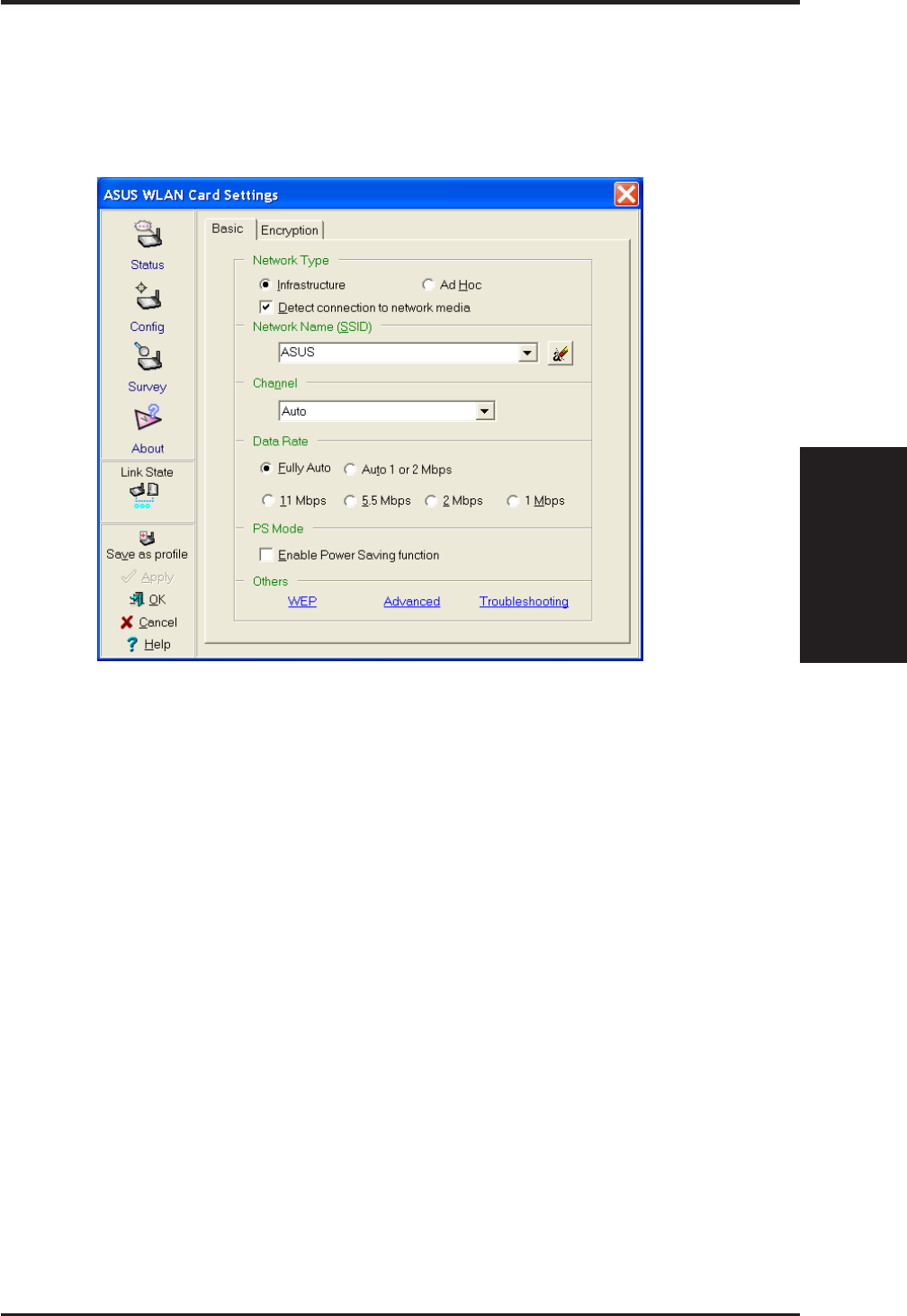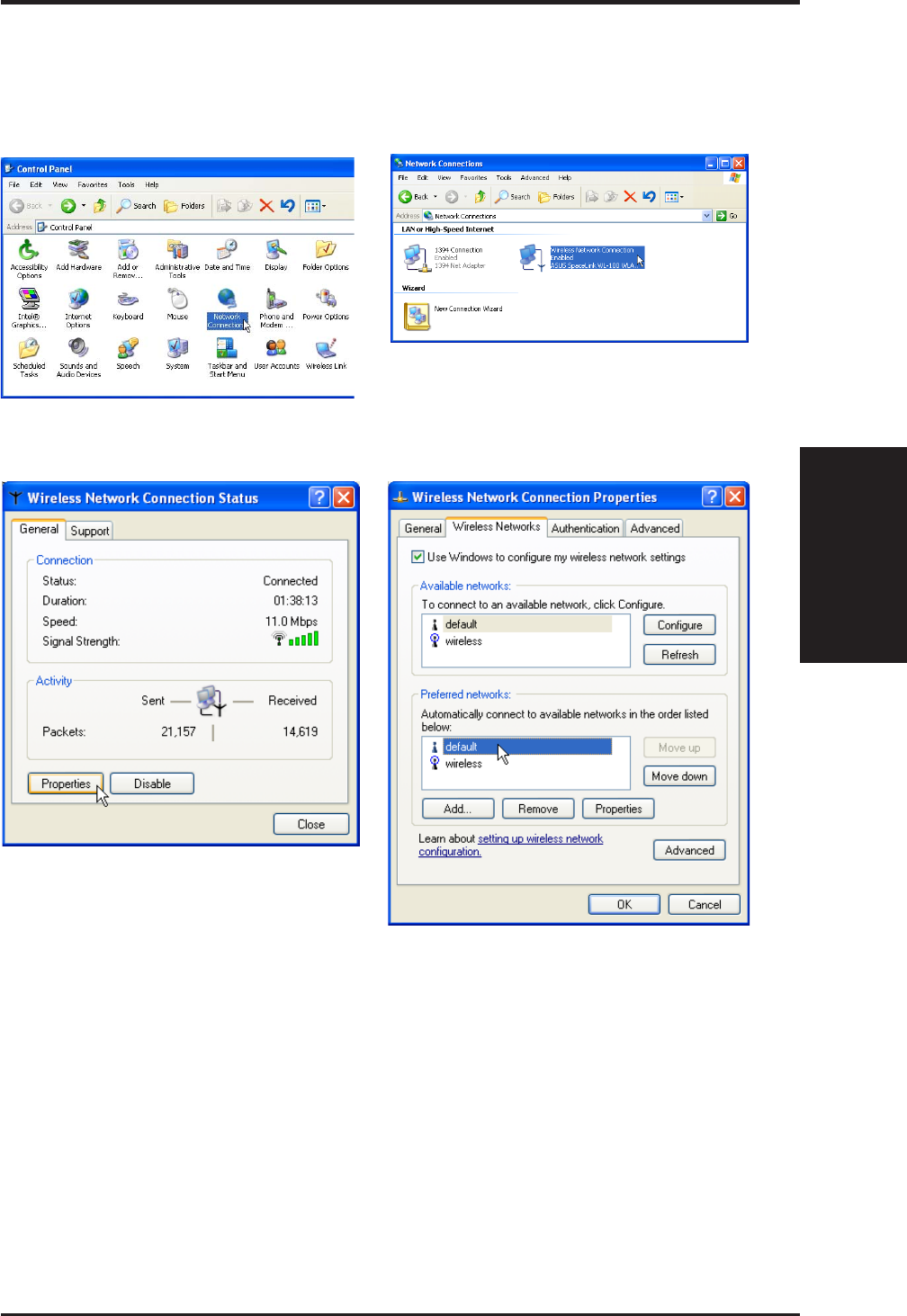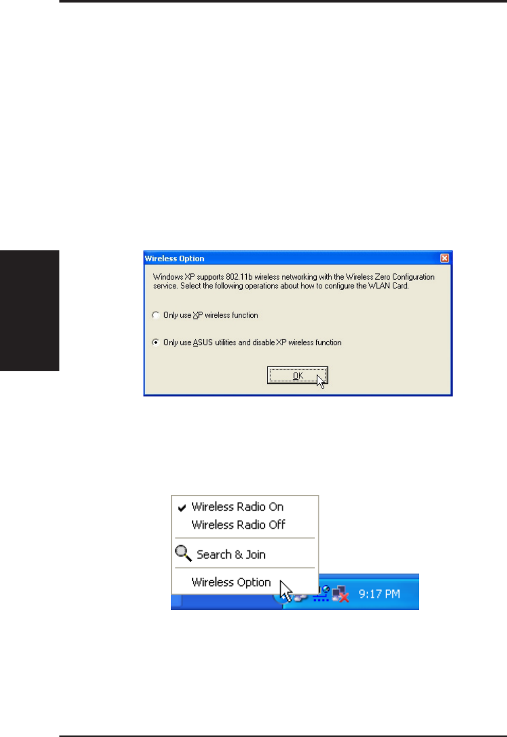 Connection icon. Right click " ASUS 802.11b Network Adapter" and sel-