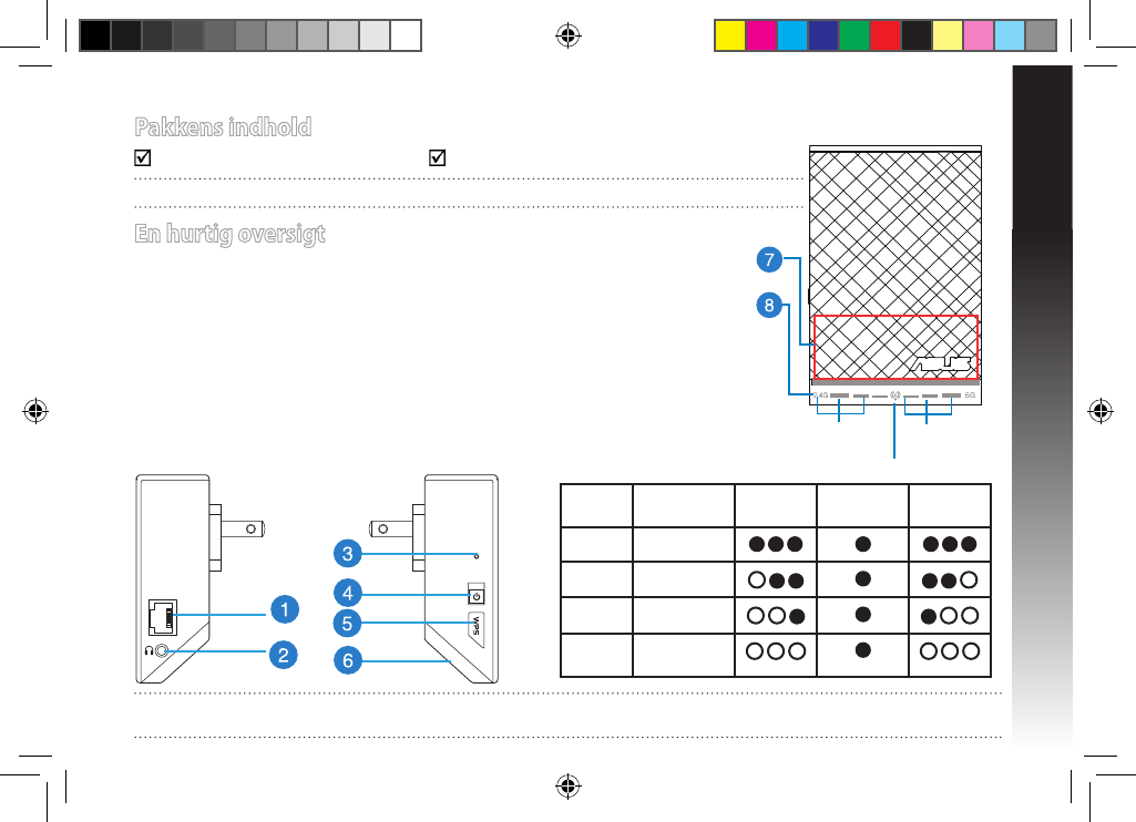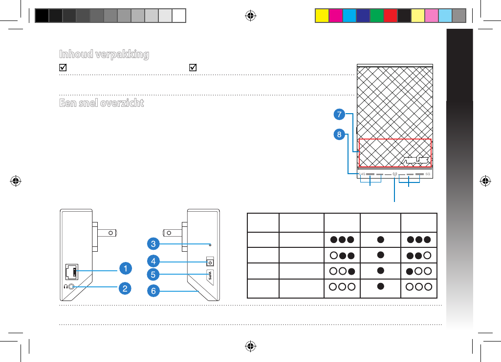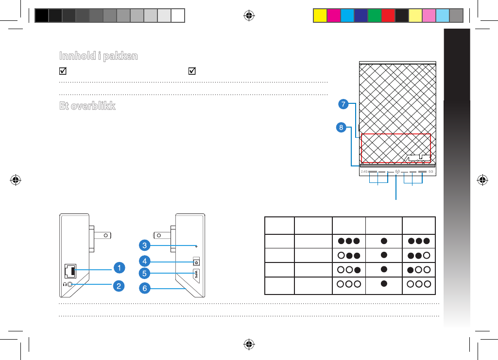 NOTERA: 2,4 GHz och 5 GHz signalindikatorerna kan lysa osymmetriskt.
