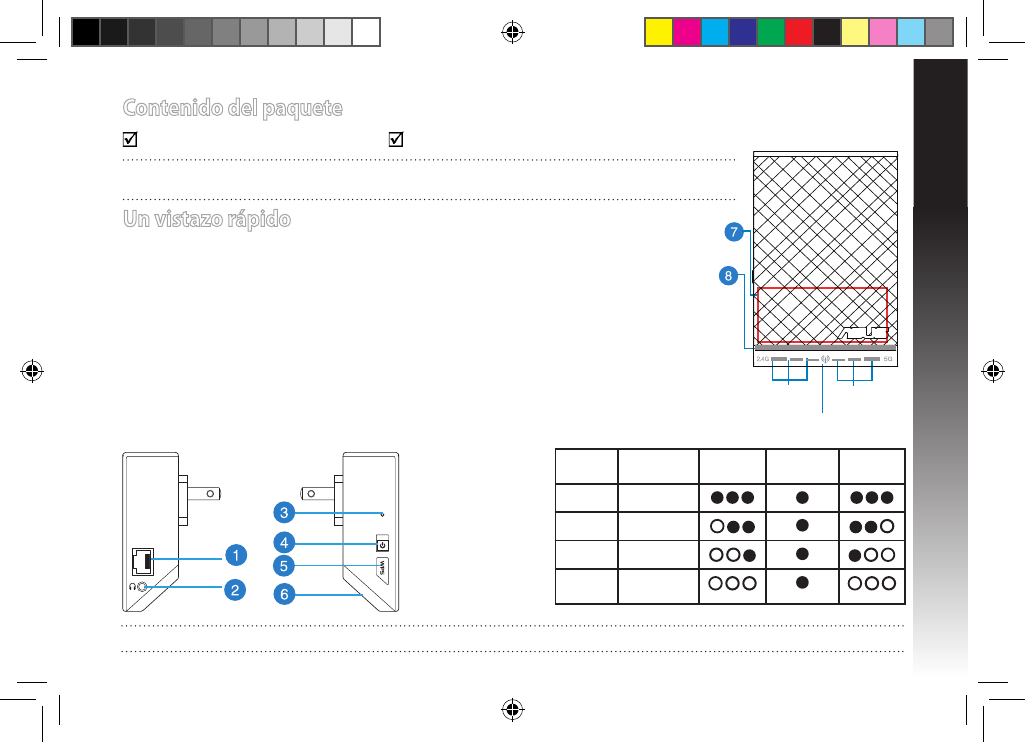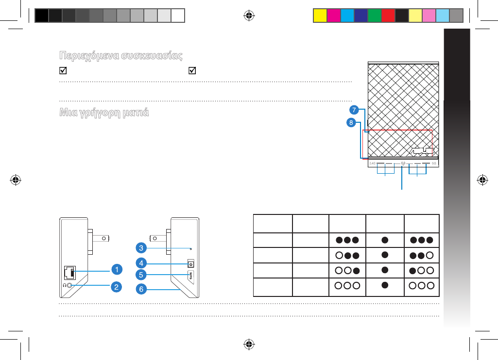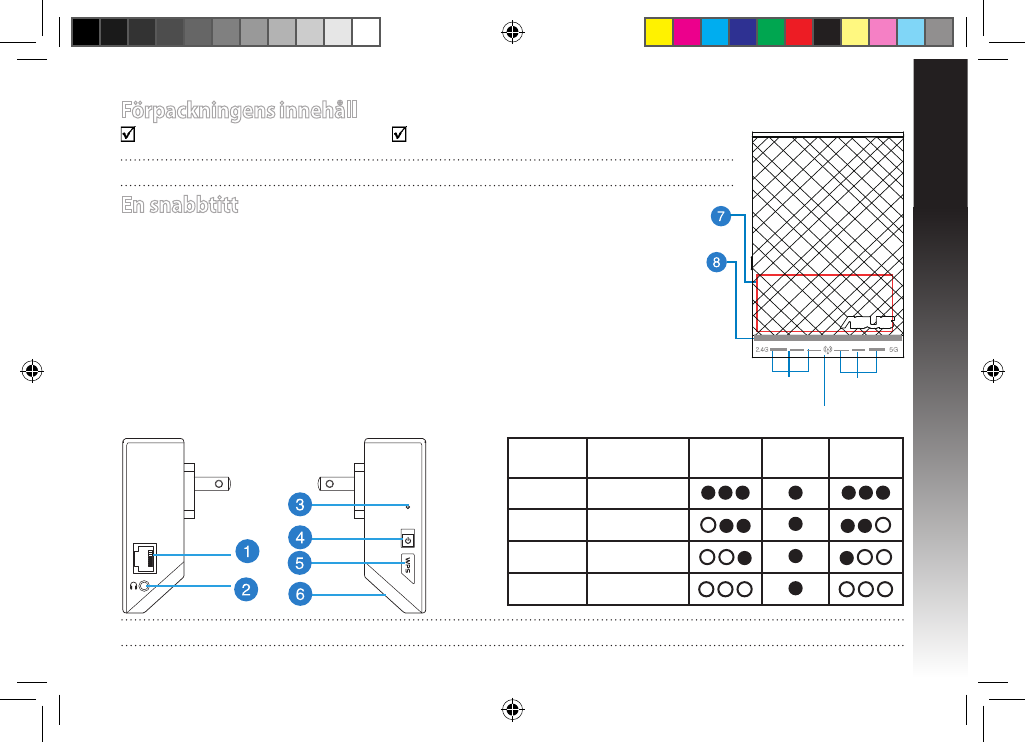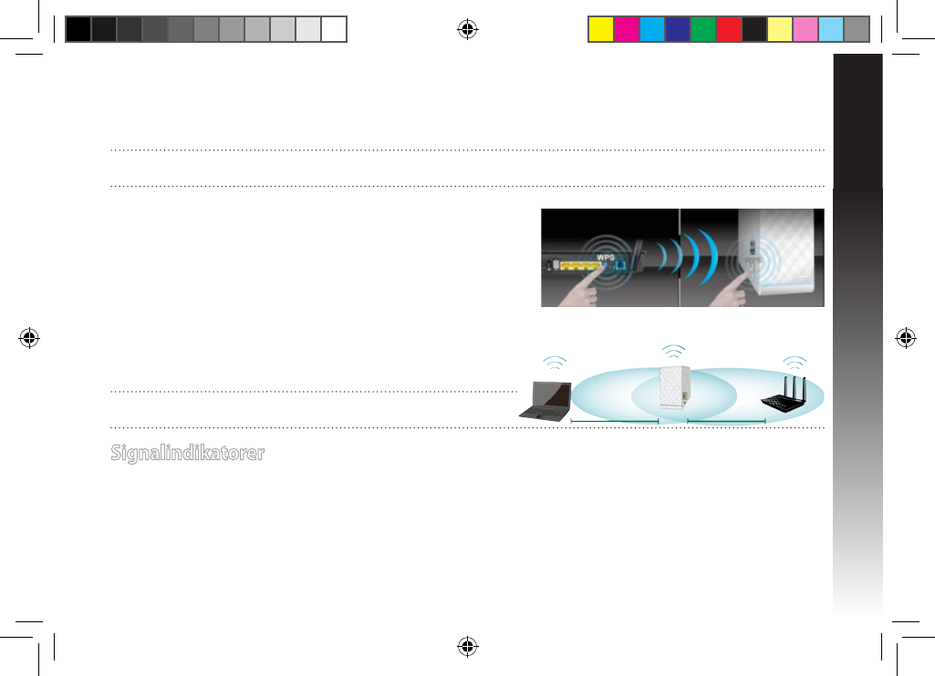 • 2,4 GHz och 5 GHz signalindikatorerna indikerar anslutningens prestanda från områdesutökaren till routern. Se LED-indikatorer i
