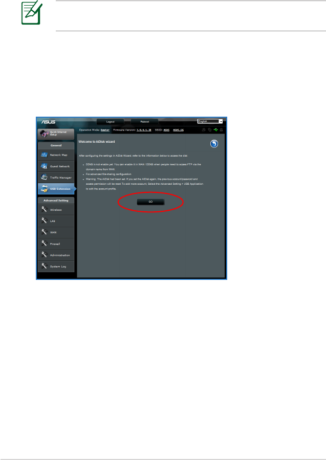3. On the AiDisk Wizard field, click GO to set up an FTP server for