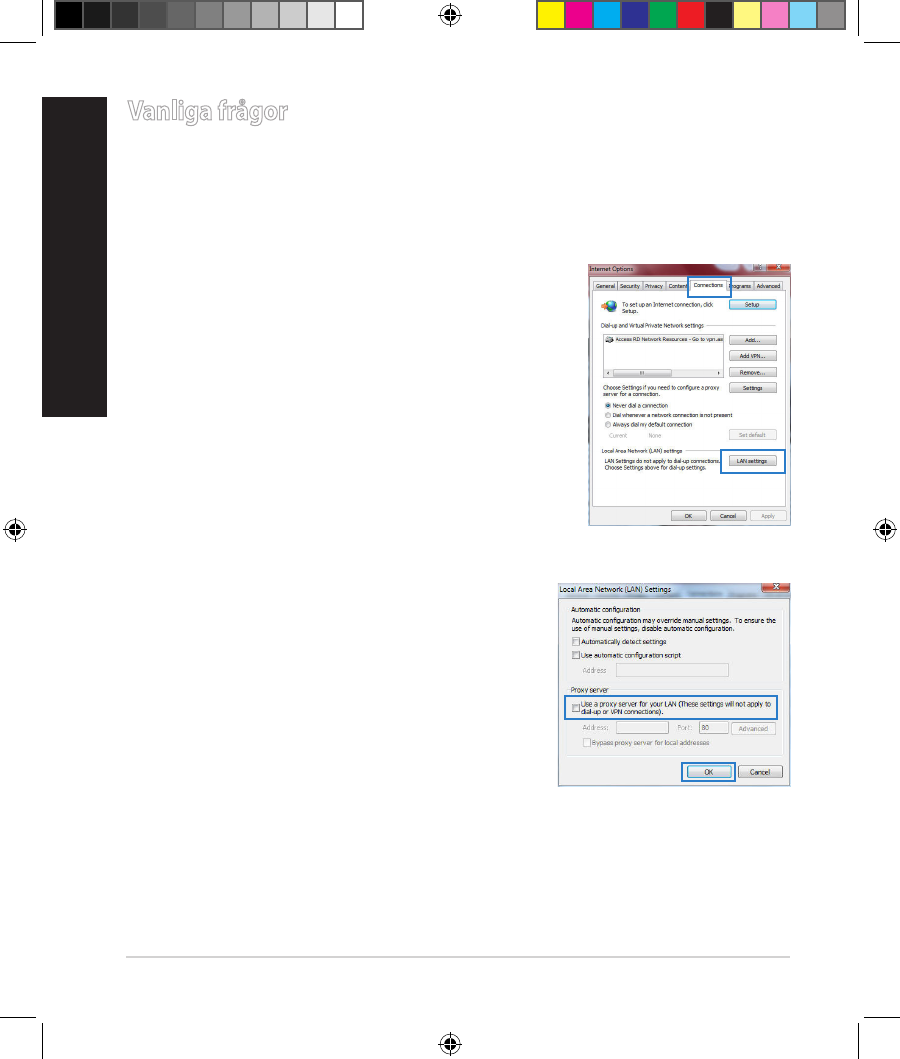 Deaktiver proxy-innstillingene, ekstern oppringing, og sett opp
