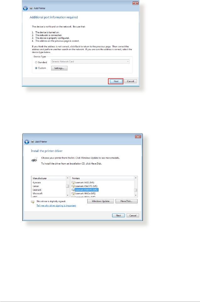 NOTE: Network printer utility is supported on Windows® XP, Windows®