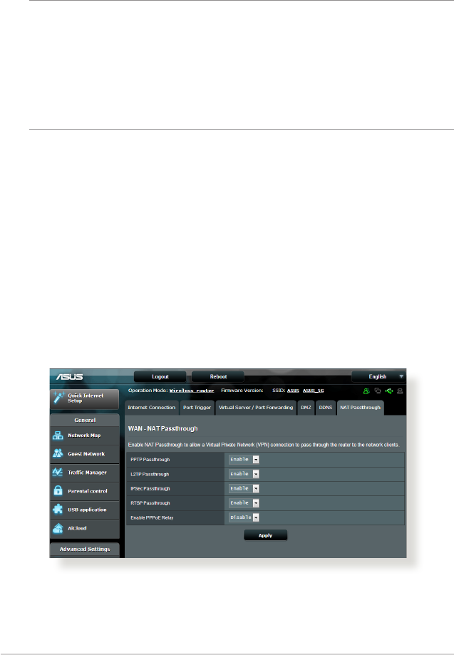 Advanced Settings > WAN > NAT Passthrough tab. When done,