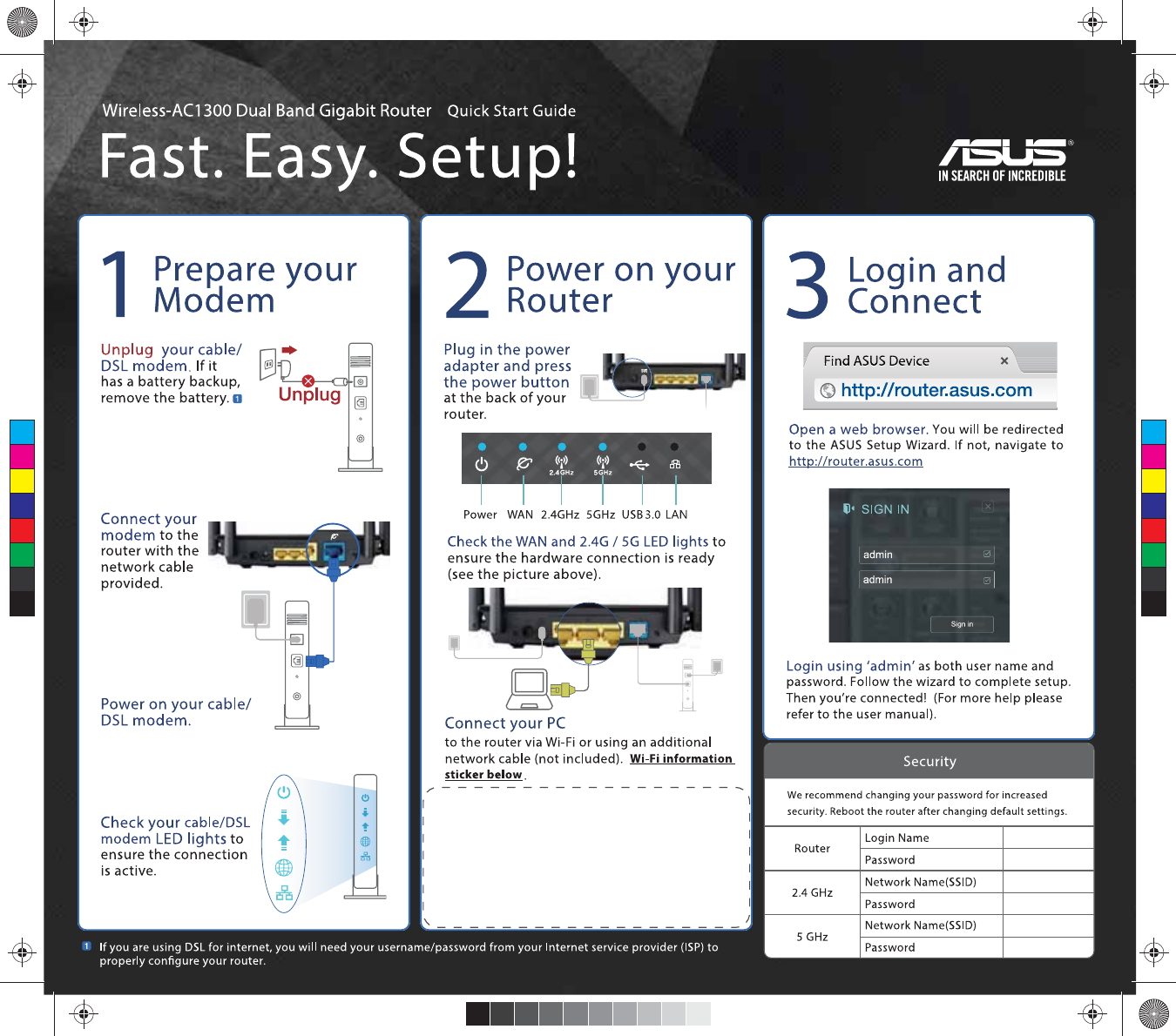 ASUSTeK Computer Inc Wireless-AC1300 Dual Band Gigabit Router 02 RT AC1300 QSG Folded sticker