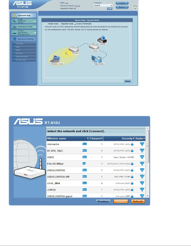 modes of the ASUS Wireless Router.