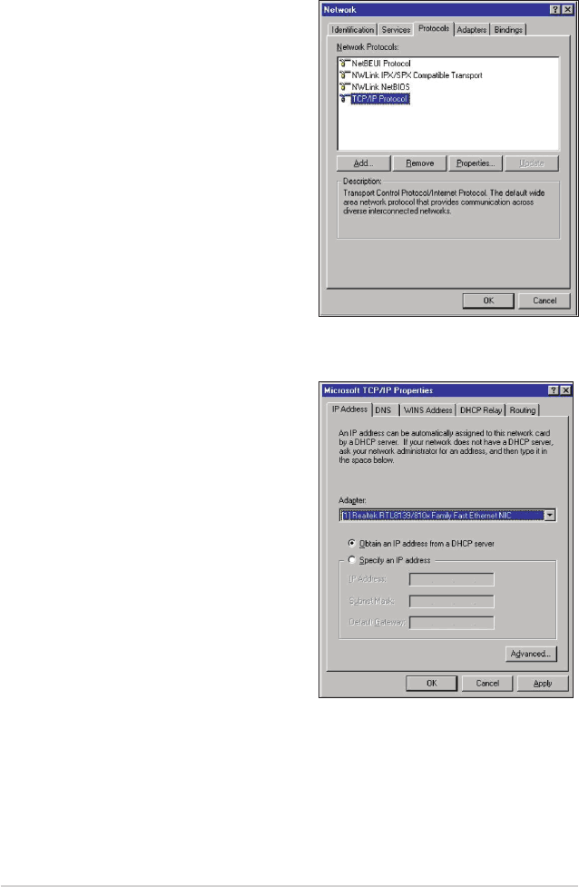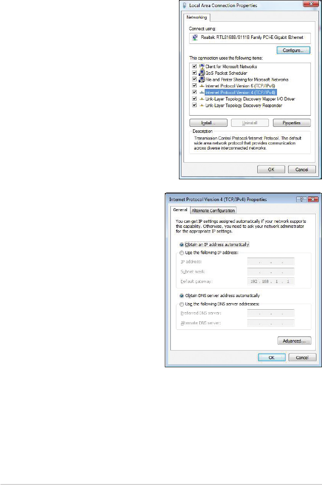 • Gateway: 192.168.1.1 (IP address of the ASUS Wireless Router)
