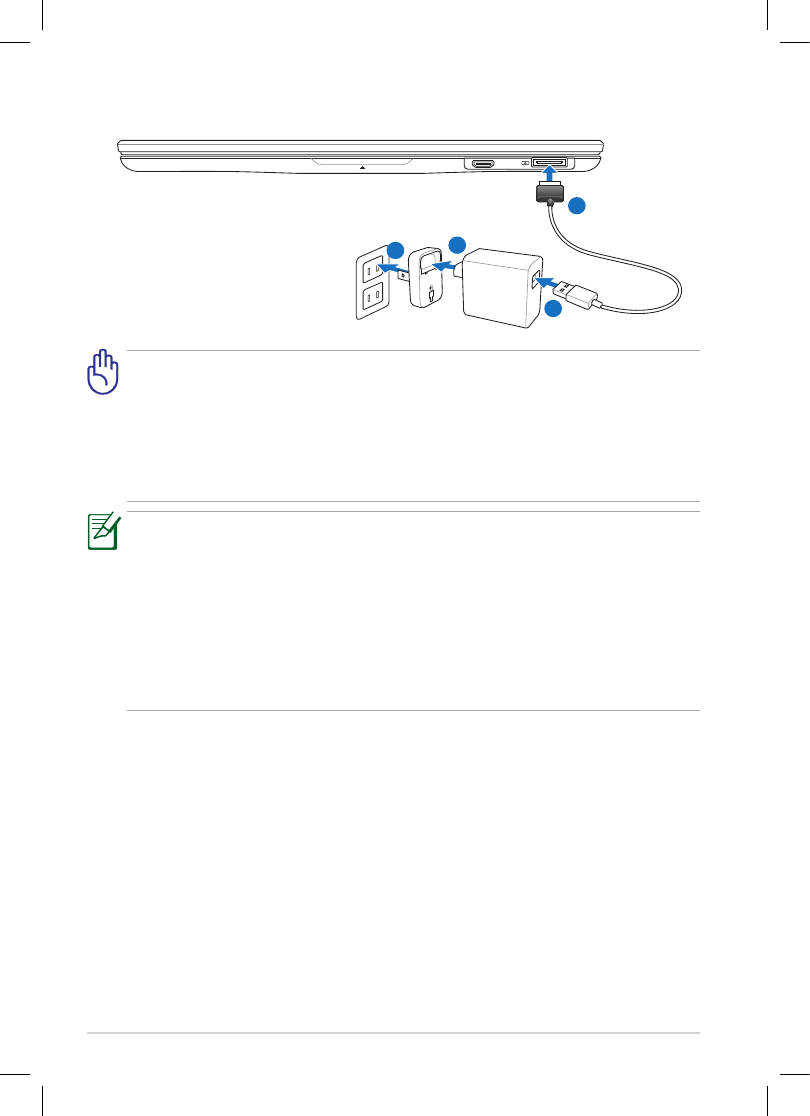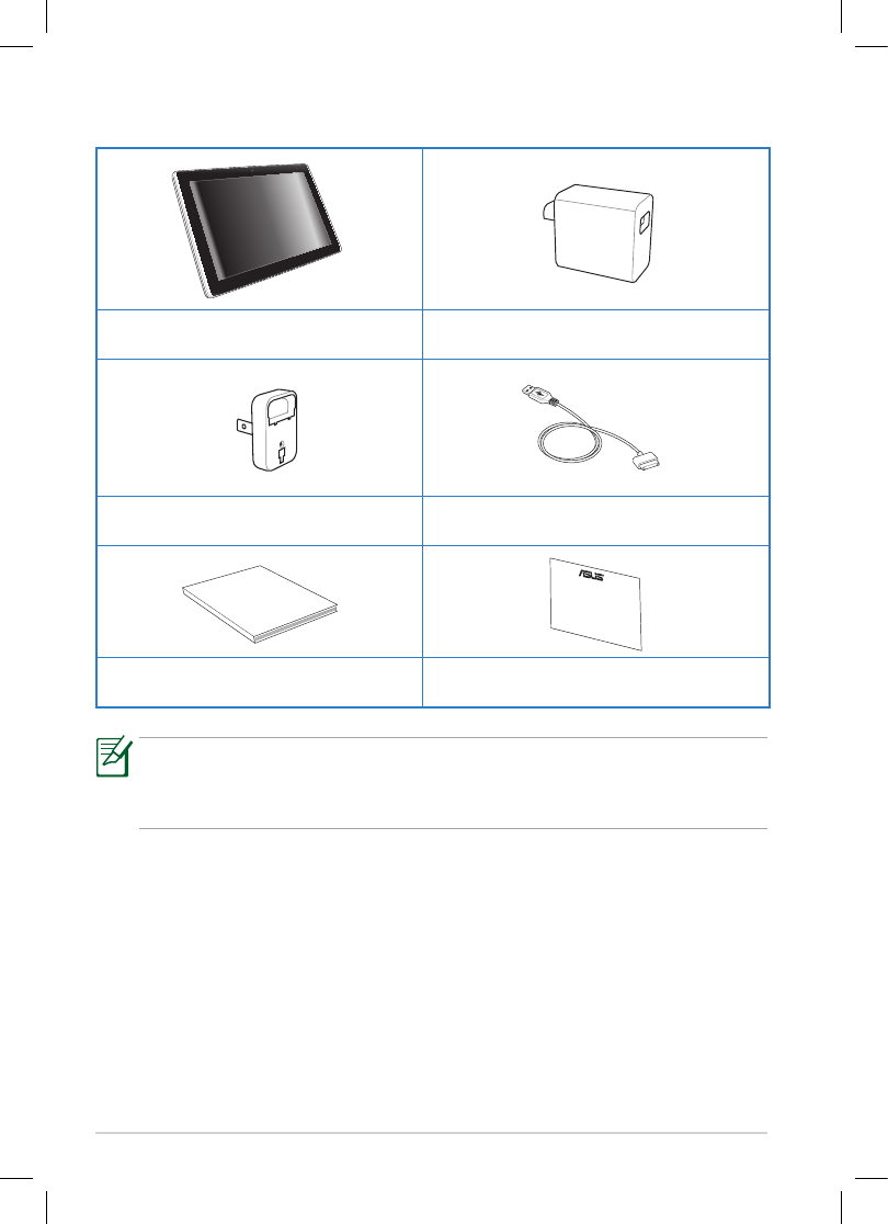 • The power plug that comes with your Eee Pad may vary depending