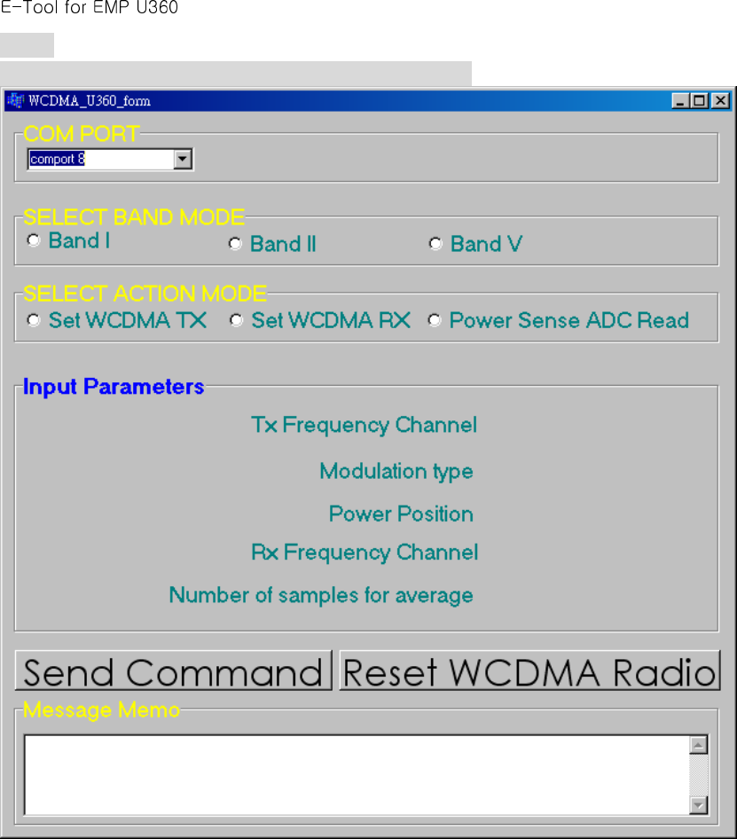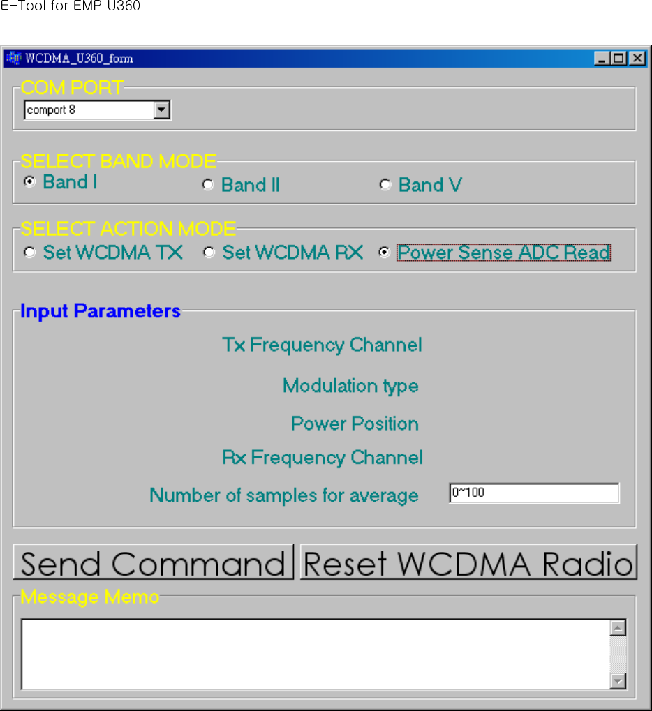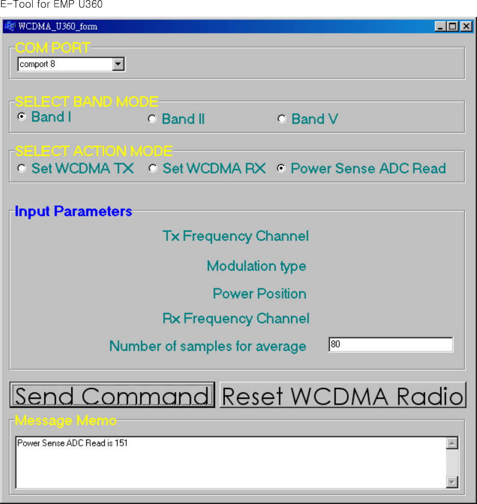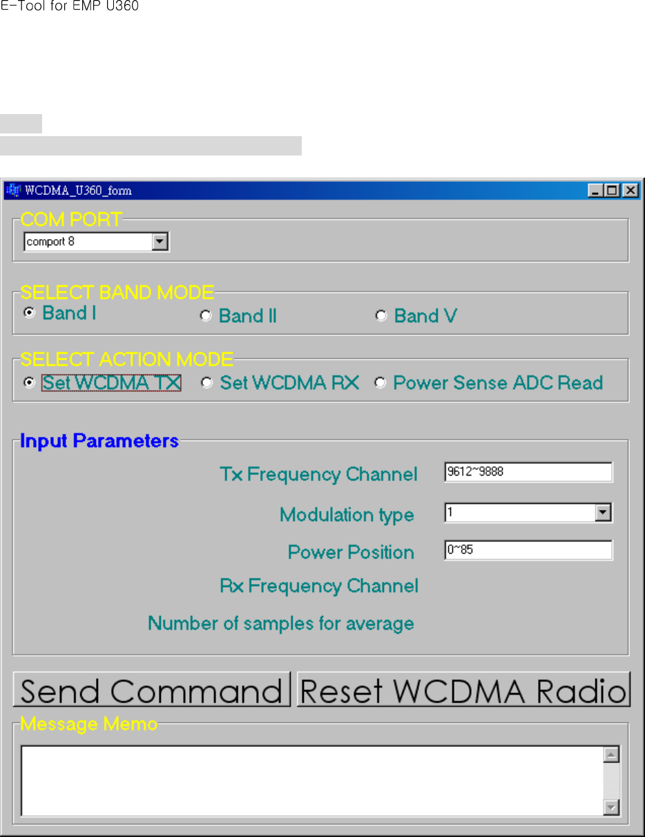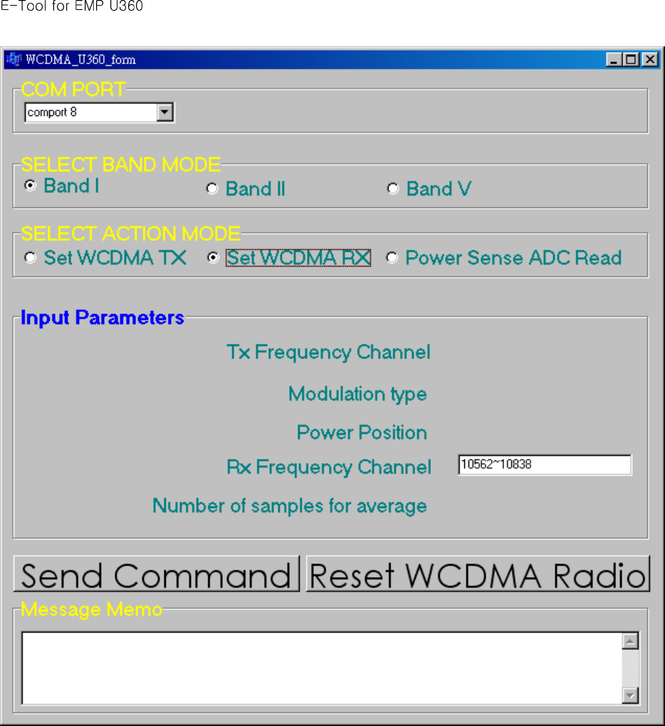 Choose Finction->U360->WCDMA, and click WCDMA to show WCDMA_U360_form