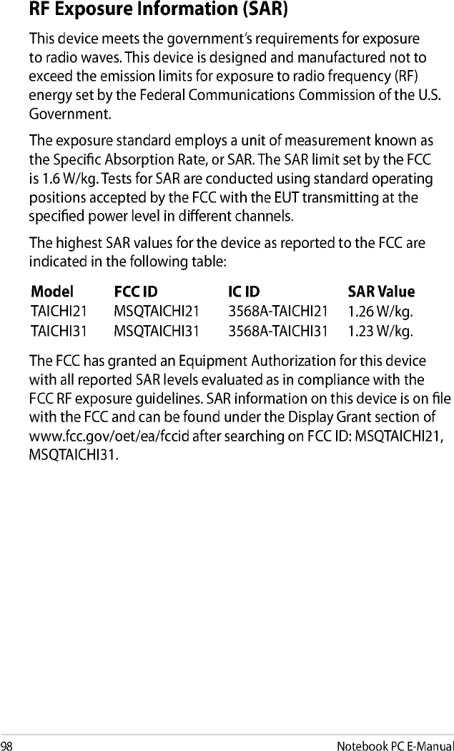 ASUSTeK Computer TAICHI31 Notebook PC User Manual TAICHI21 31 1129