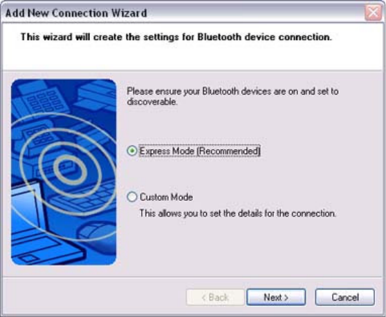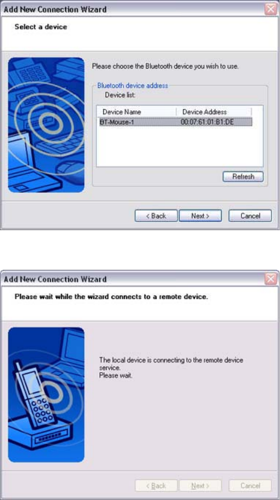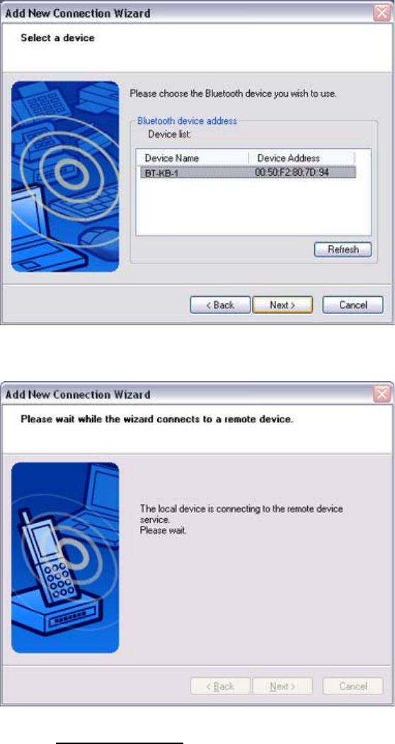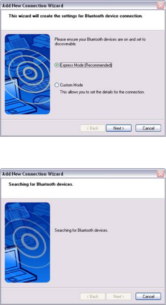 The [Add New Connection Wizard (Searching for Bluetooth Devices)] screen will