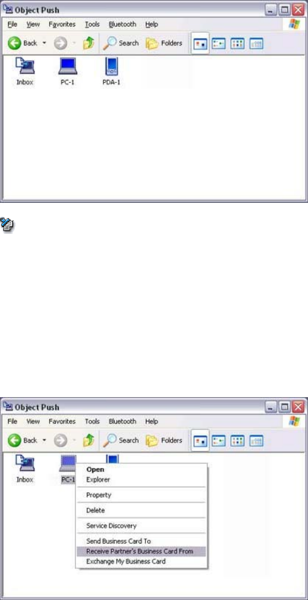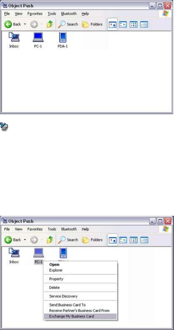 In this case, the business cards will be exchanged with a PC named "PC-1".