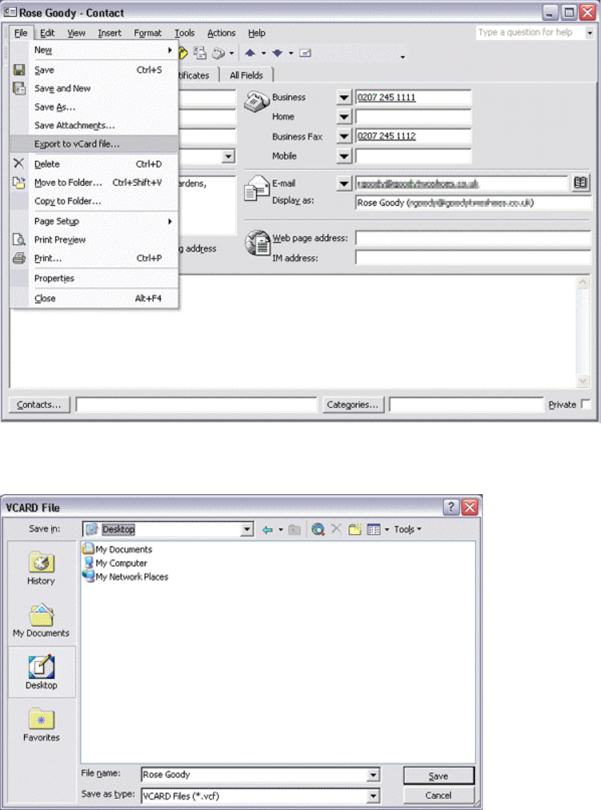3. In the [vCard file] dialog box, specify the file name and save destination, and