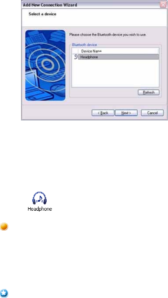 You can connect to the stereo headphones from the icon registered in [Bluetooth