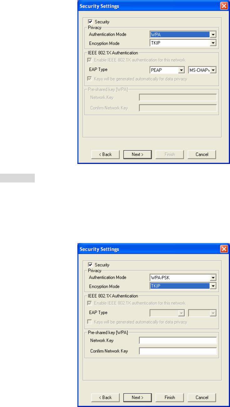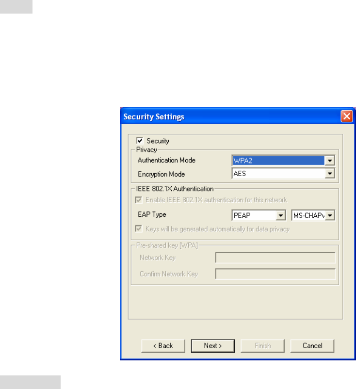 If the wireless security is activated for the selected wireless network, the related fields must be set