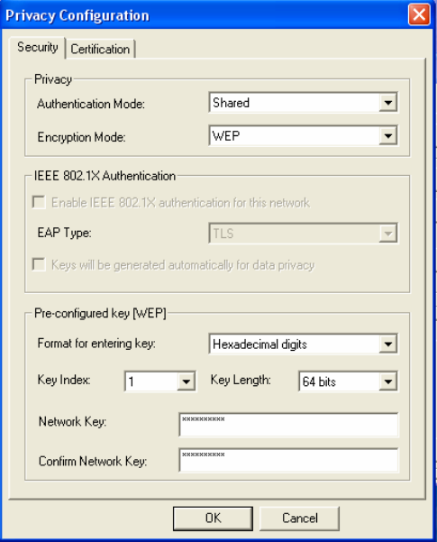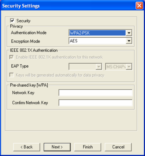 Auth Mode, Encryption Mode and Network Key.