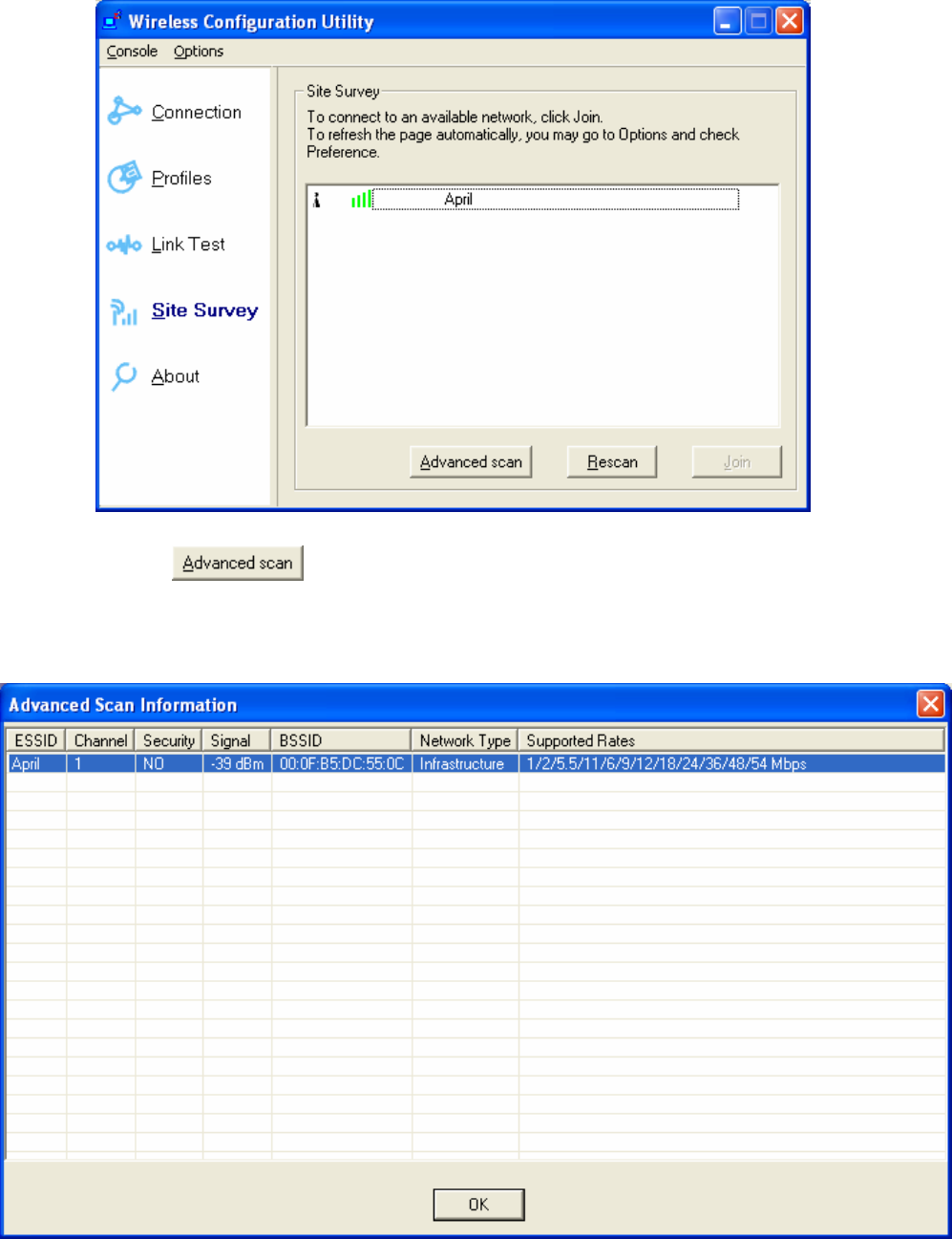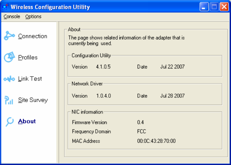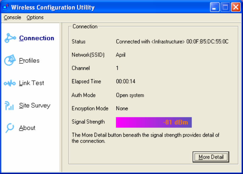 the Windows Vista and Windows XP wireless zero configuration tool.