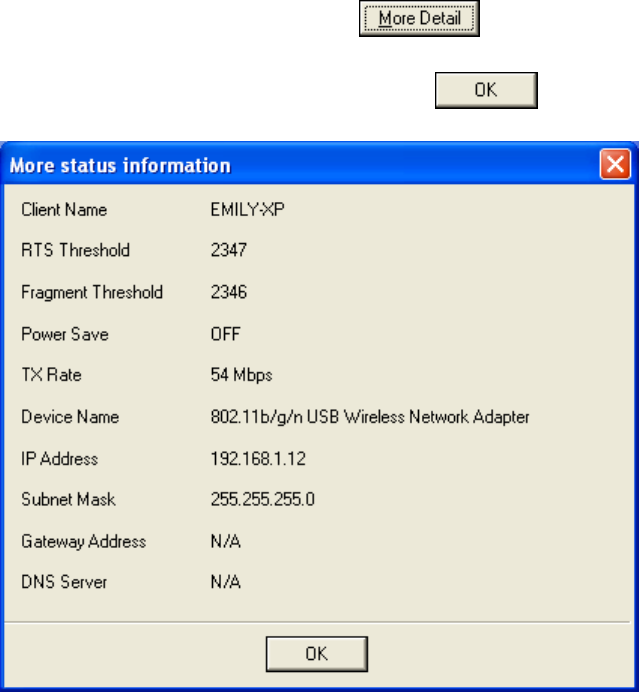 Wireless Network Connection Status screen.