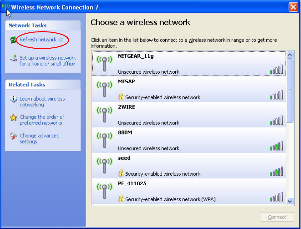 transmission range. Select a wireless network in the list and click Connect to join the selected