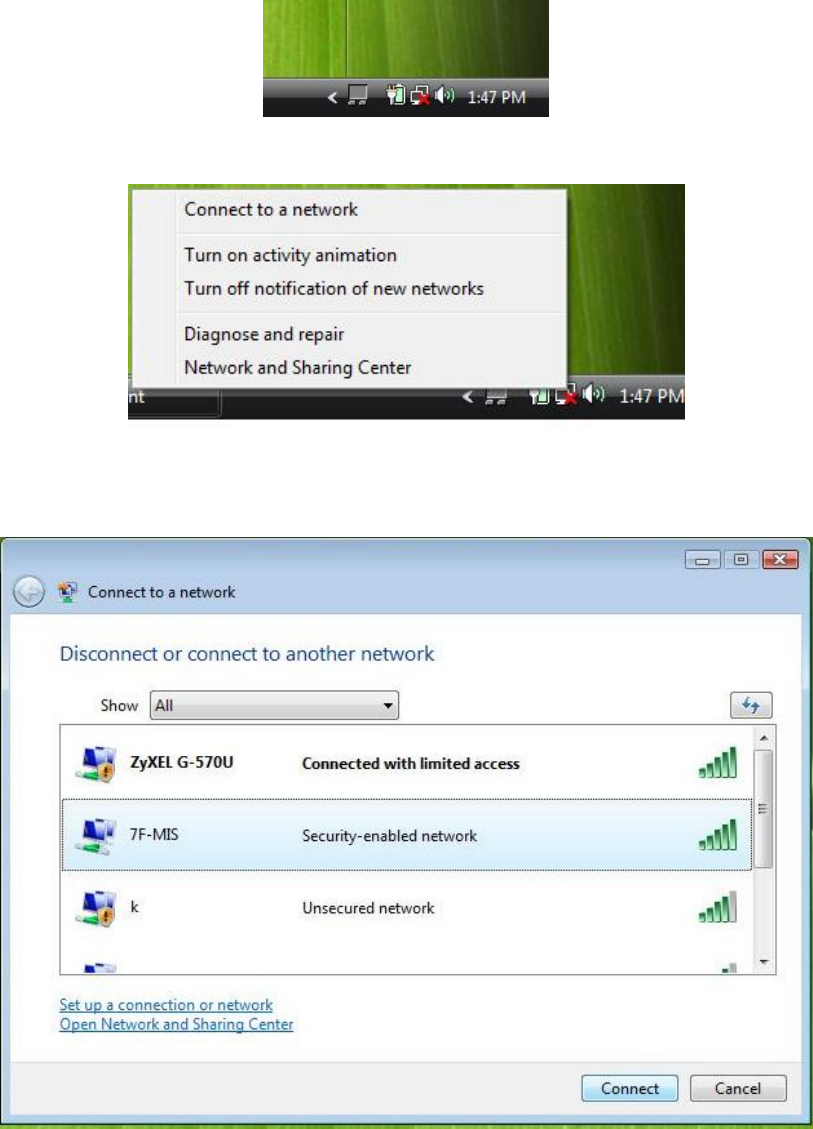 Step 1: Click the network icon for wireless connections in the system tray to open the Wireless