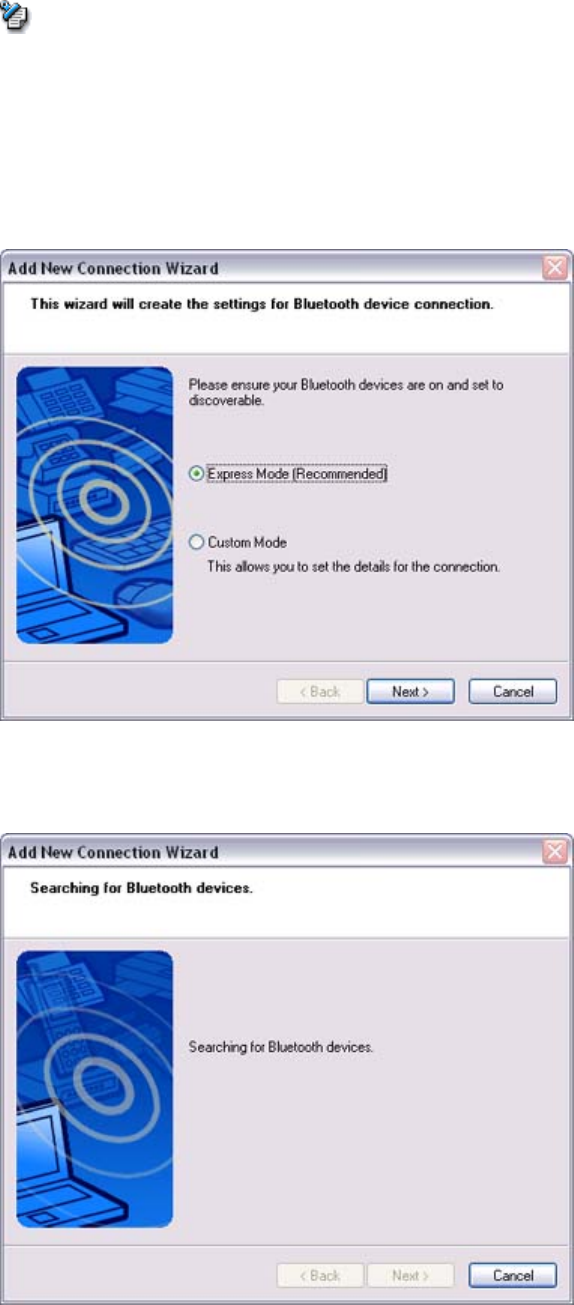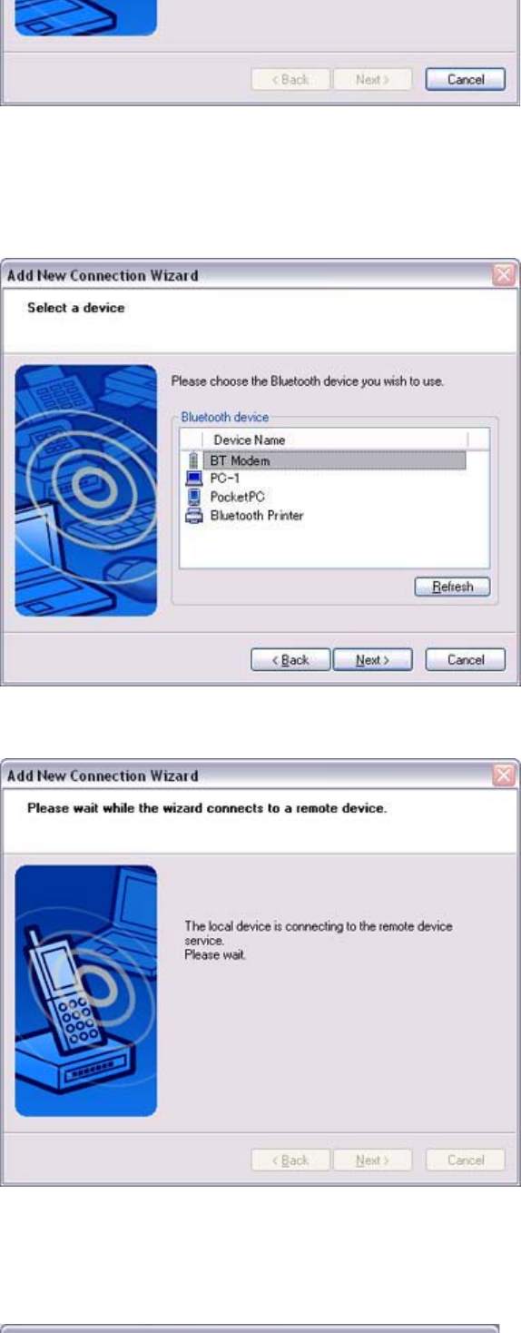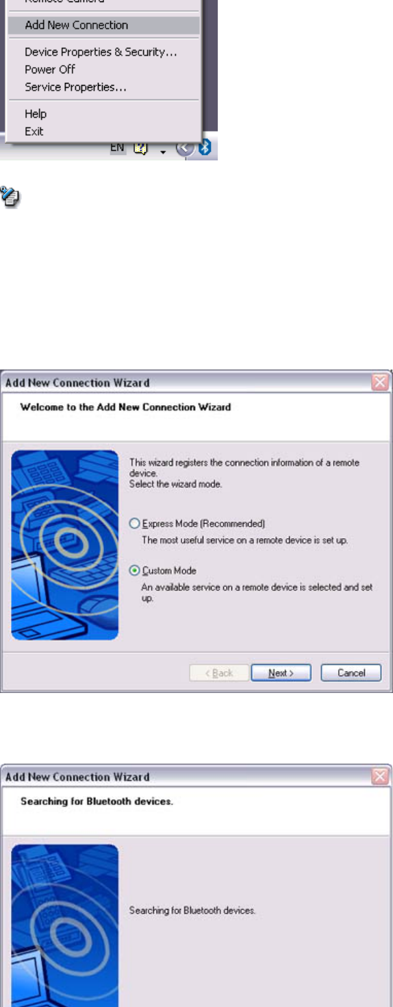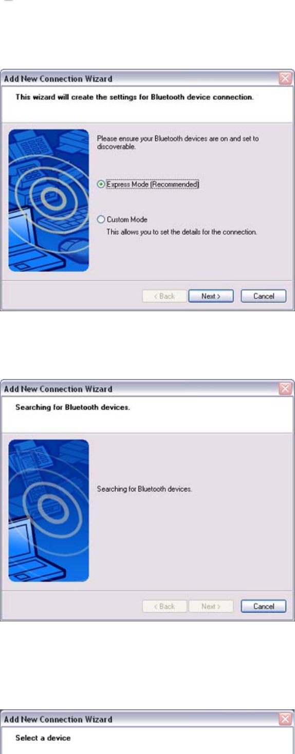 The [Add New Connection Wizard (Searching for Bluetooth devices)] window
