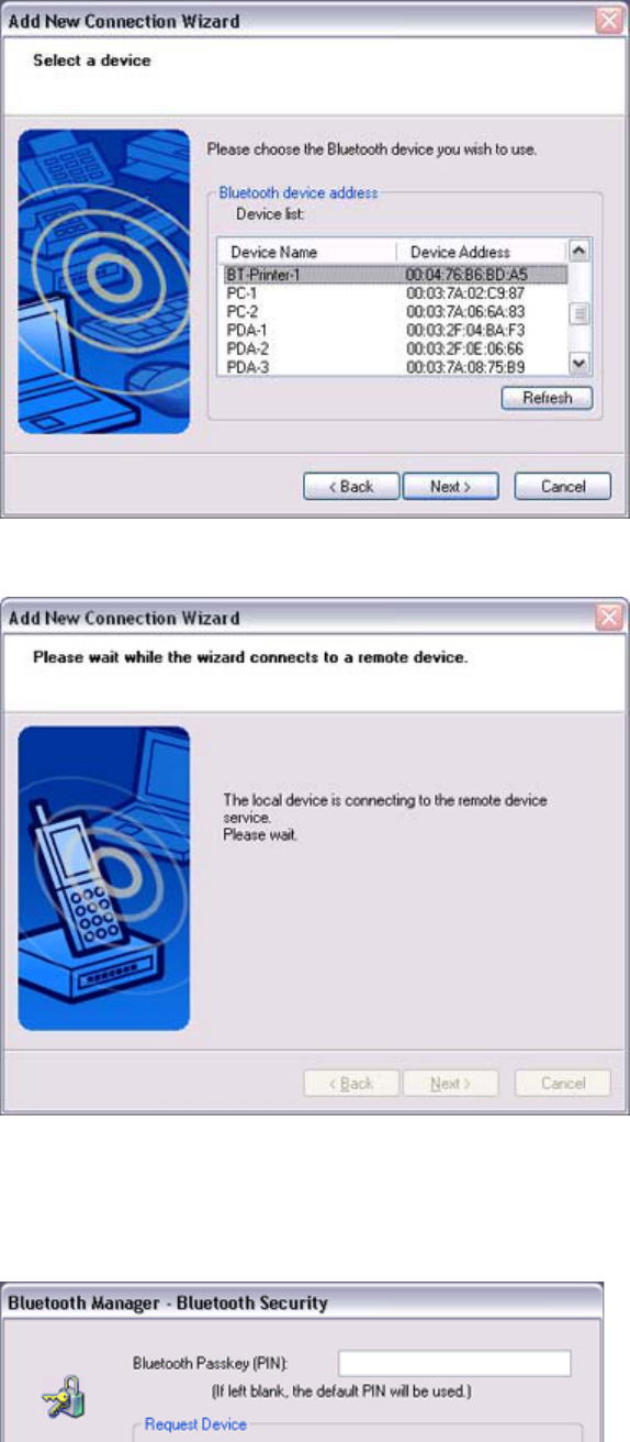 device from the [Bluetooth Passkey (PIN Code)] window, and then click on the