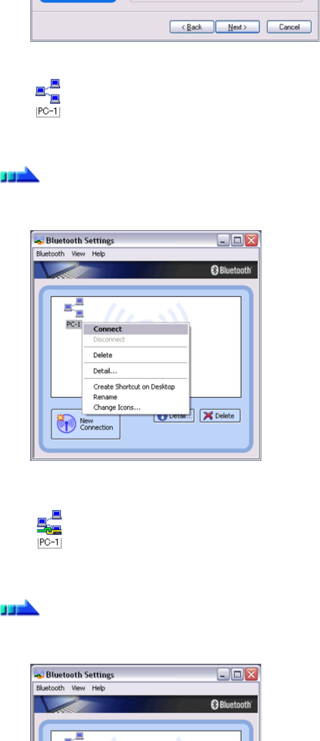 Right-click either on the connection icon under the [Bluetooth Settings] window or on