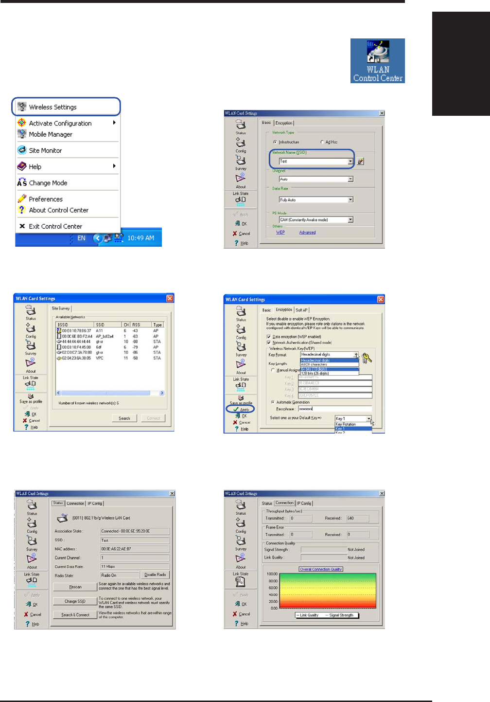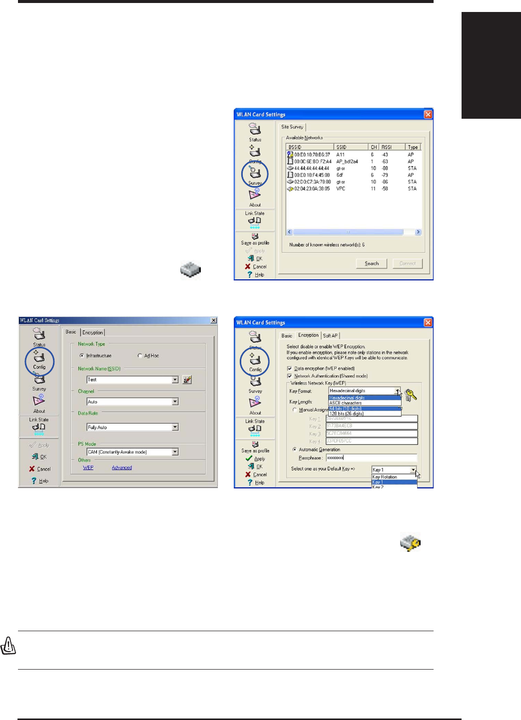 IMPORTANT! The encryption settings of the Wireless LAN card and
