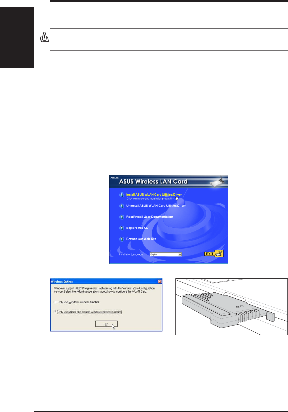 Install WLAN Card Utilities/Driver. Follow instructions to complete the installation.
