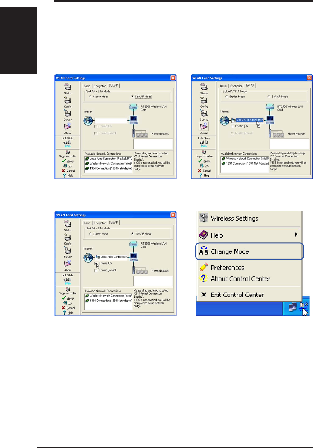 Soft AP mode allows the WLAN card to act as a virtual access point. The computer
