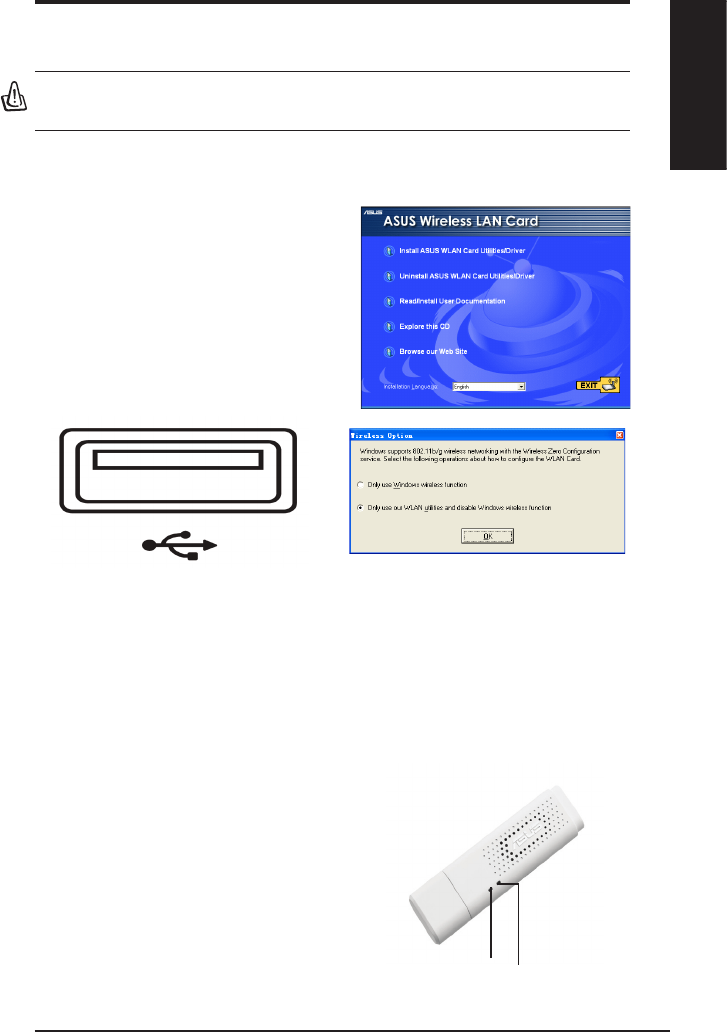 – Only use ASUS WLAN utilities to congure the WLAN Adapter.