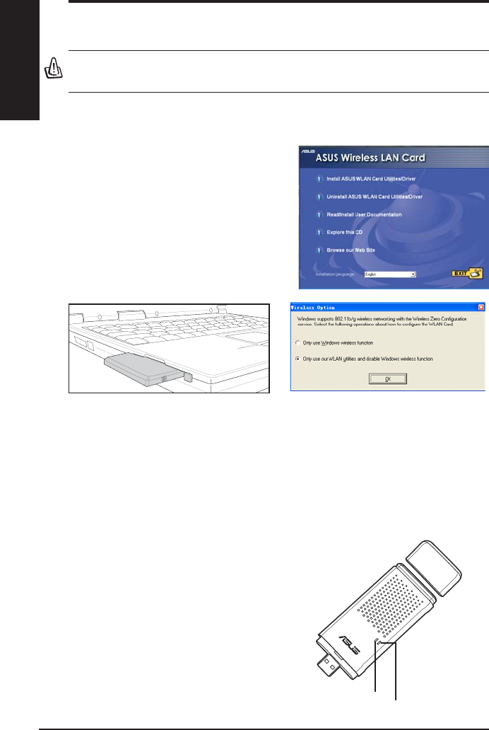 Important: Install the WLAN Adapter utilities before inserting the WLAN