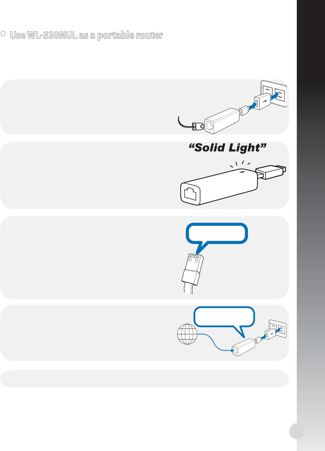 • Use WL-330NUL as a portable router