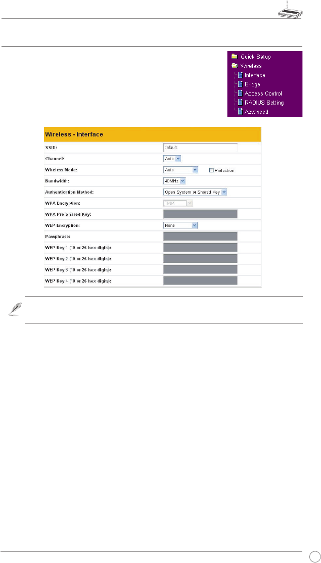 Click Wireless -> Interface to open the conguration page.