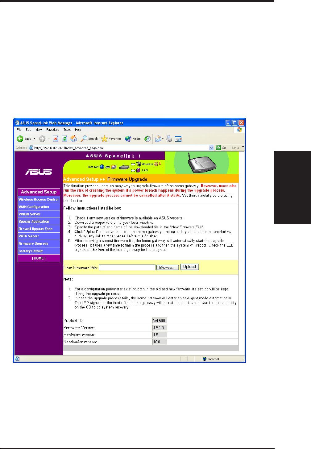 Product Name: SpaceLink Home Gateway (WL-500)