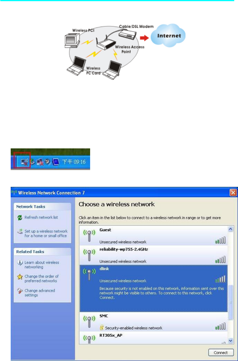 connect your computer to a wireless local area network (LAN). A wireless LAN allows