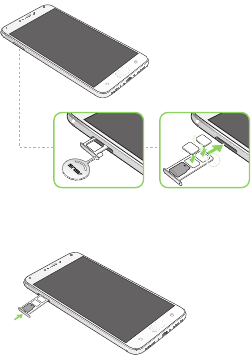 2. InserttheNanoSIMormicroSDcardintothe