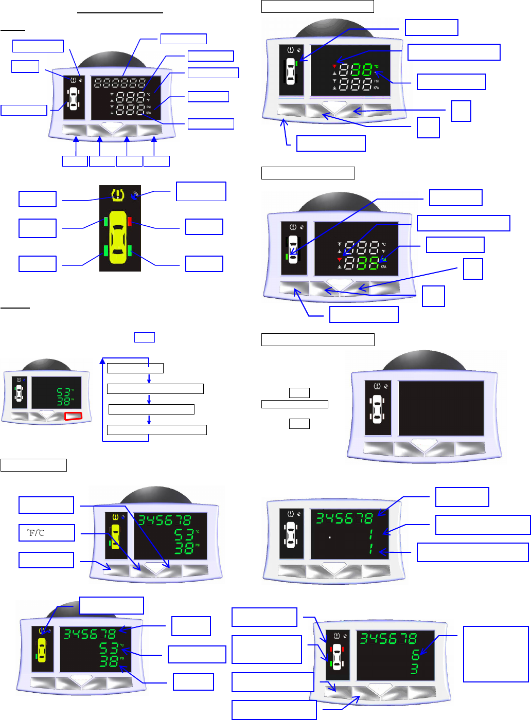 Key 1 can call one tire parameters out, including temperature,