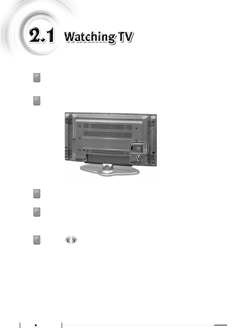 Press the power button on the rear panel of the LCD TV.