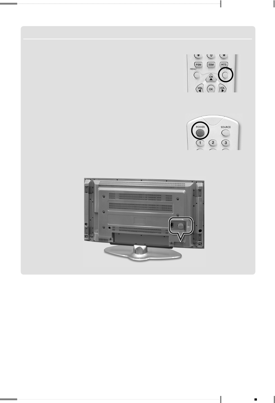 Press the power button on the rear panel of the LCD TV (or unplug the power cord from the wall