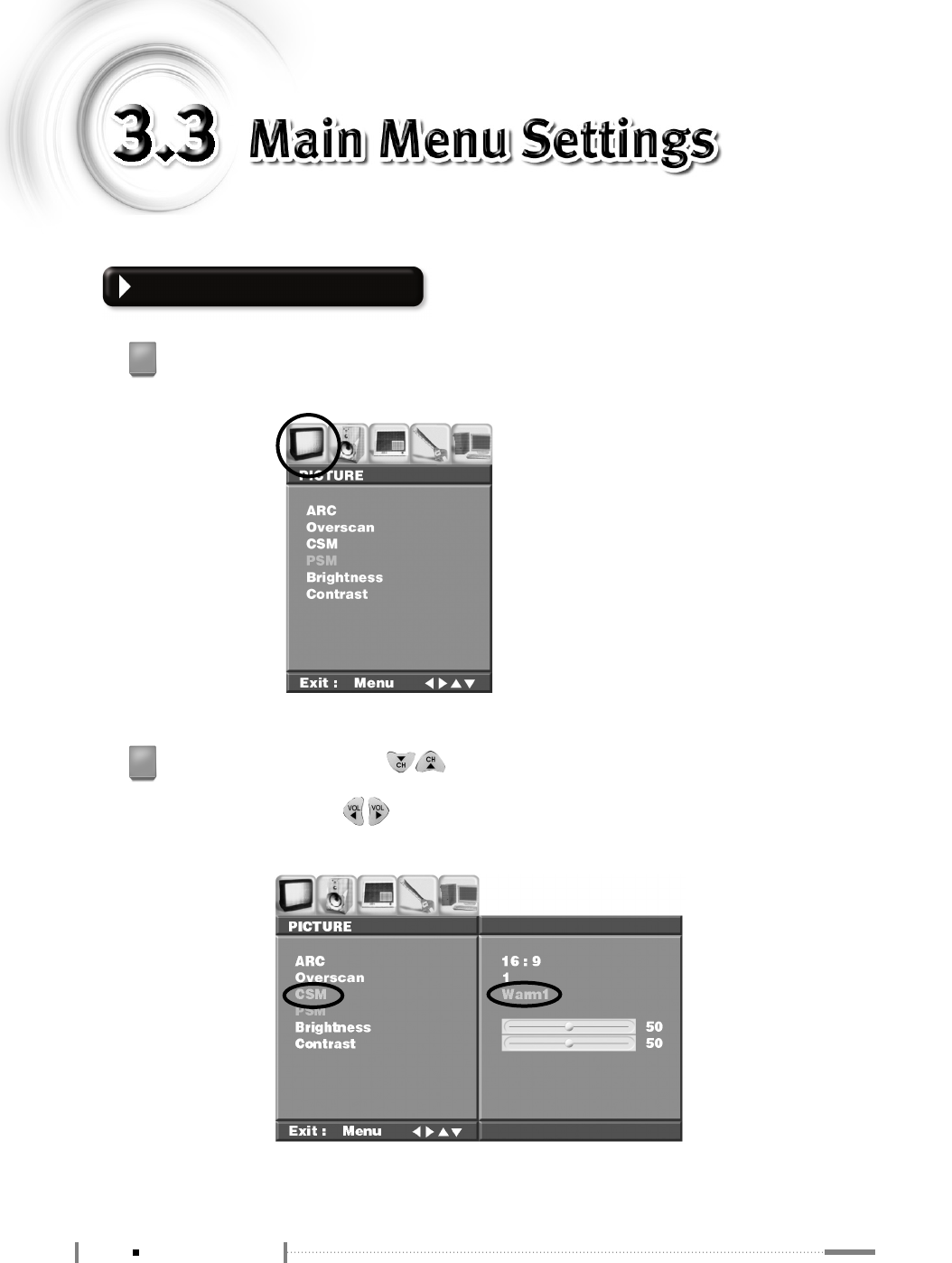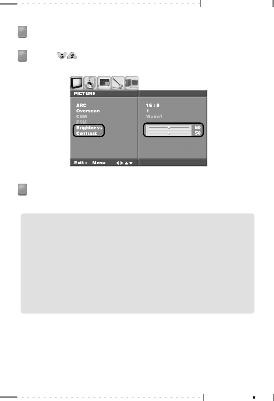 OverScan 1~5 Magnifies the size of the picture on screen.