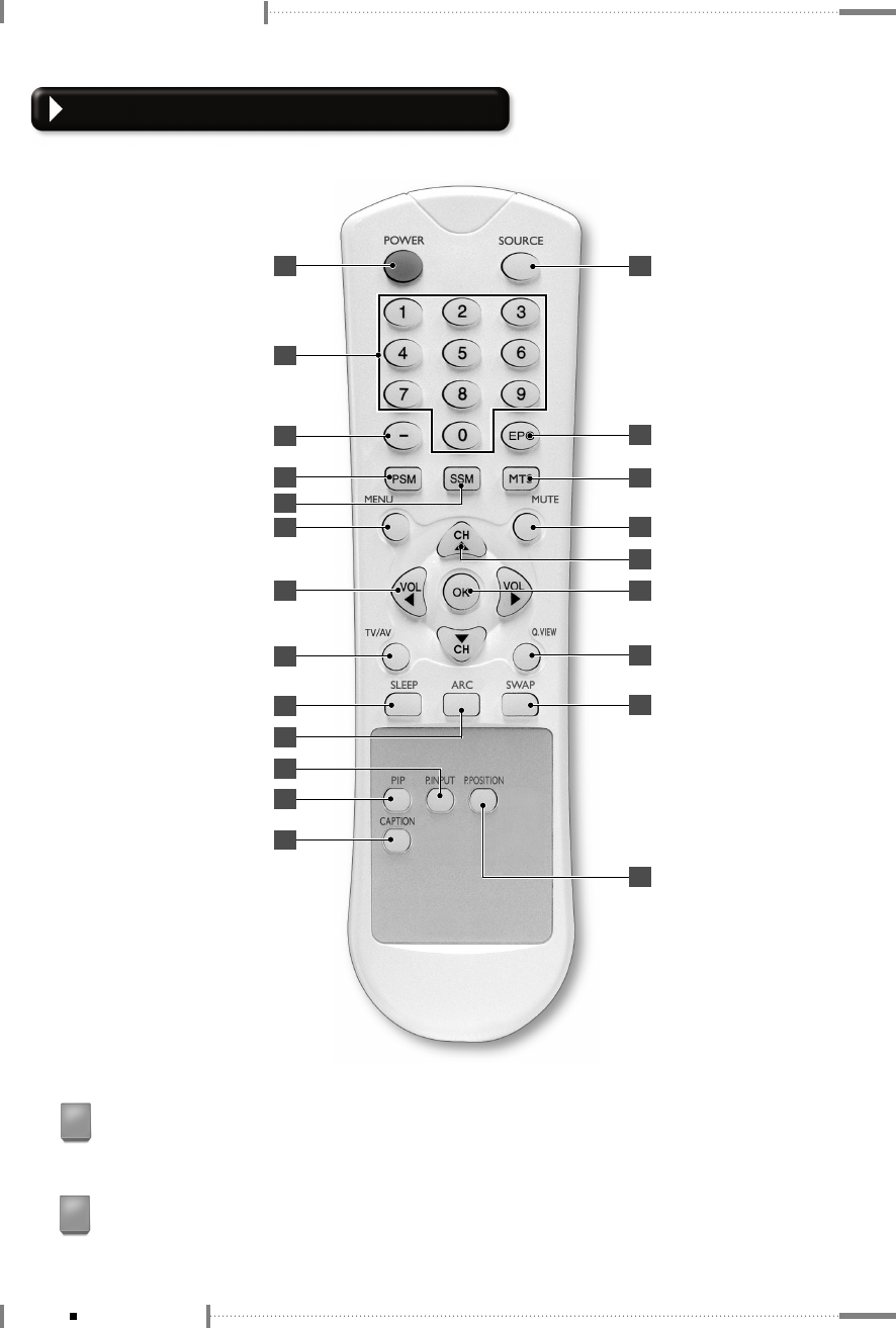 Press CH ▼or CH ▲to change channels. Also used to select in the OSD menu or