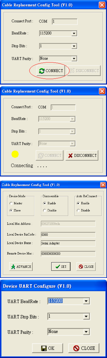 All the Bluetooth RS232 Serial Adapters must be configured first before they can be