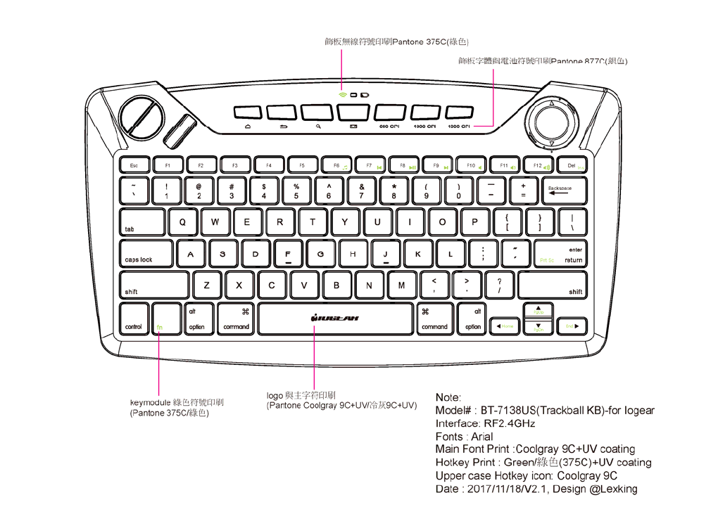 ATEN Technology, Inc., dba IOGEAR Wireless RF2.4 Keyboard w/Trackball eng