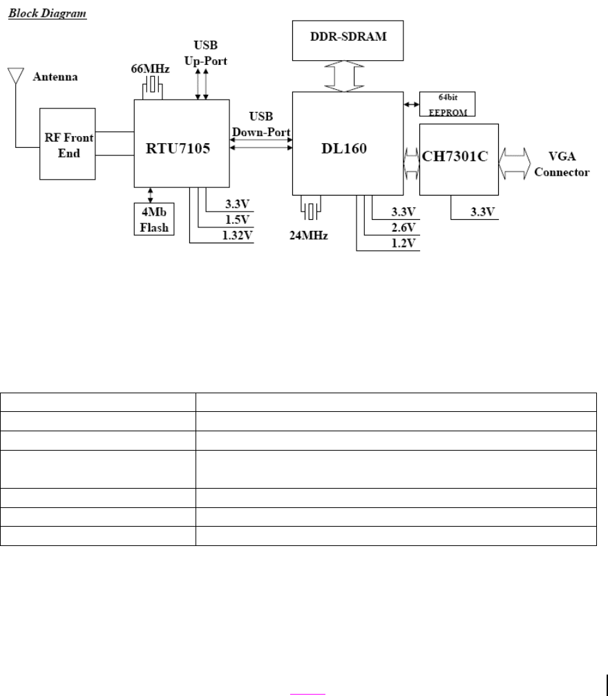 VGA adapter Demo Board. For WUSB application, a dongle is used as the